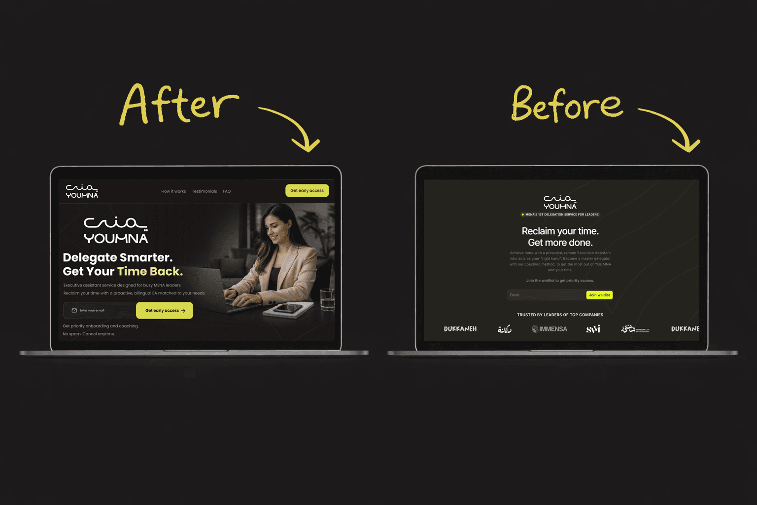 The original Youmna website lacked clear information hierarchy and intuitive navigation, making it difficult for users to find what they needed. The visual design didn’t fully engage visitors or reflect the brand’s identity, reducing overall user satisfaction.